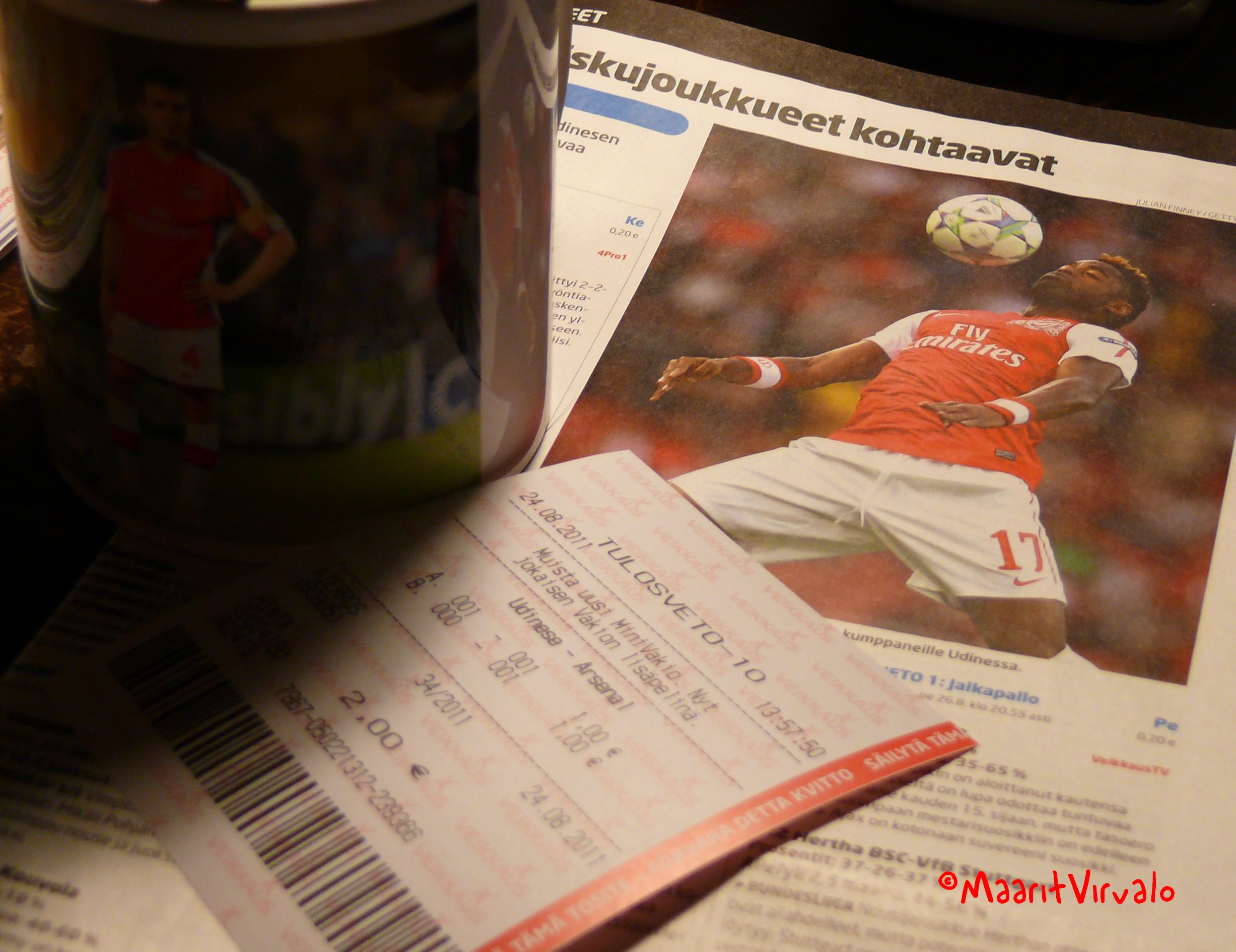 Tässä sitten Tykkinaisen eli Maaritin ensimmäinen kirjoitus eilisestä Arsenalin pelistä: