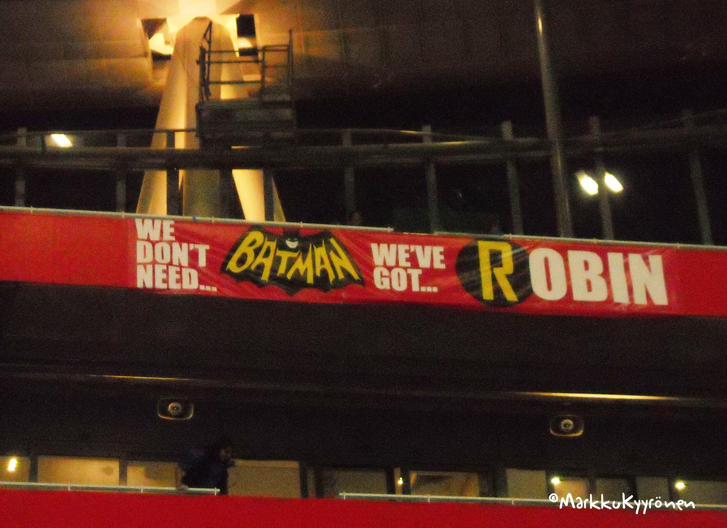 lainattu mun banneria ”We don’t need Batman, we’ve got Robin”ia.
