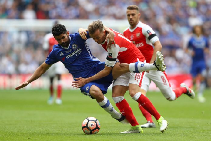 Sekä Chelsean että Arsenalin pelaajien oli määrä kantaa surunauhoja Manchesterin terrori-iskun uhrien muistoksi, mutta ottelun alkaessa niitä näkyi vain Tykkimiehillä.