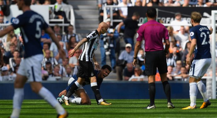 Jonjo Shelvey johdatti joukkueensa kapteenina kentälle valioliigakauden ensimmäiseen otteluun Tottenhamia vastaan. Noin tunti myöhemmin hän lensi kentältä ulos tallottuaan vihellyksen jälkeen Dele Allin jalan päälle.