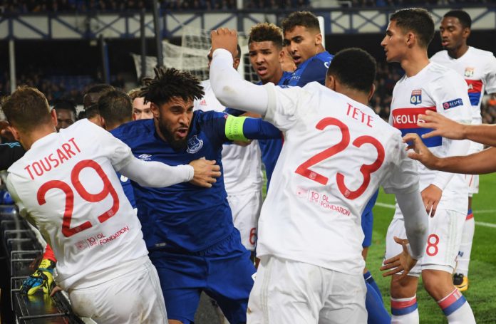 Everton sai sakot 19. lokakuuta pelatun Lyon-ottelun tapahtumista. Joukkueiden pelaajat rähisivät toisilleen katsomon läheisyydessä. Eräs Everton-fani päätti kaikessa viisaudessaan osallistua torikokoukseen. Hän onnistui huitaisemaan Lyonin maalivahtia Anthony Lopesia. Äärimmäisen ikävän tapauksesta tekee se, että kyseinen fani kantoi samaan aikaan lasta sylissään.