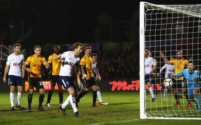 Lopulta Spursin painostus palkittiin. Son jatkoi kulmapotkun etualueelta maalin eteen. Kaikki Newportin pelaajat seurasivat etualueen tapahtumia ja kentän vaarallisin maalintekijä Harry Kane jäi täysin vapaaksi. Kanella oli helppo työ putata pallo maaliin.