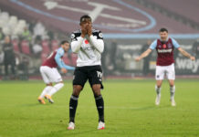 Lookman, 23, pyrki yllättämään West Hamin maalivahdin Łukasz Fabiańskin niin sanotulla Panenka-rankkarilla, mutta...